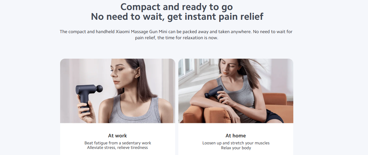 Weighing only 375g ± 10g (without massage head), the compact Xiaomi Massage Gun Mini is easy to hold, carry, and use—perfect for home, office, or gym.
