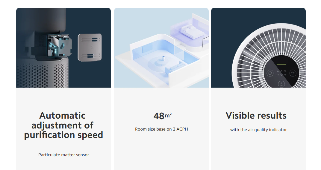 Built-in sensors adjust fan speed automatically based on real-time PM2.5 levels—no manual control needed. -
